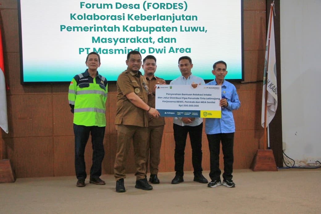 Pada kesempatan tersebut turut dilakukan penyerahan secara simbolis bantuan relokasi intake dan jalur distribusi pipa PT Tirta Latimojong melalui kerja sama Balai Besar Wilayah Sungai, Pemerintah Kabupaten Luwu dan PT Masmindo Dwi Area. Selain itu, dilaksanakan serah terima pipanisasi air bersih di Desa Rante Balla, pemberian Program Beasiswa Generasi Emas (GENMAS), serta Program Quick Wins Forum Desa pada 21 desa wilayah operasional tambang.
