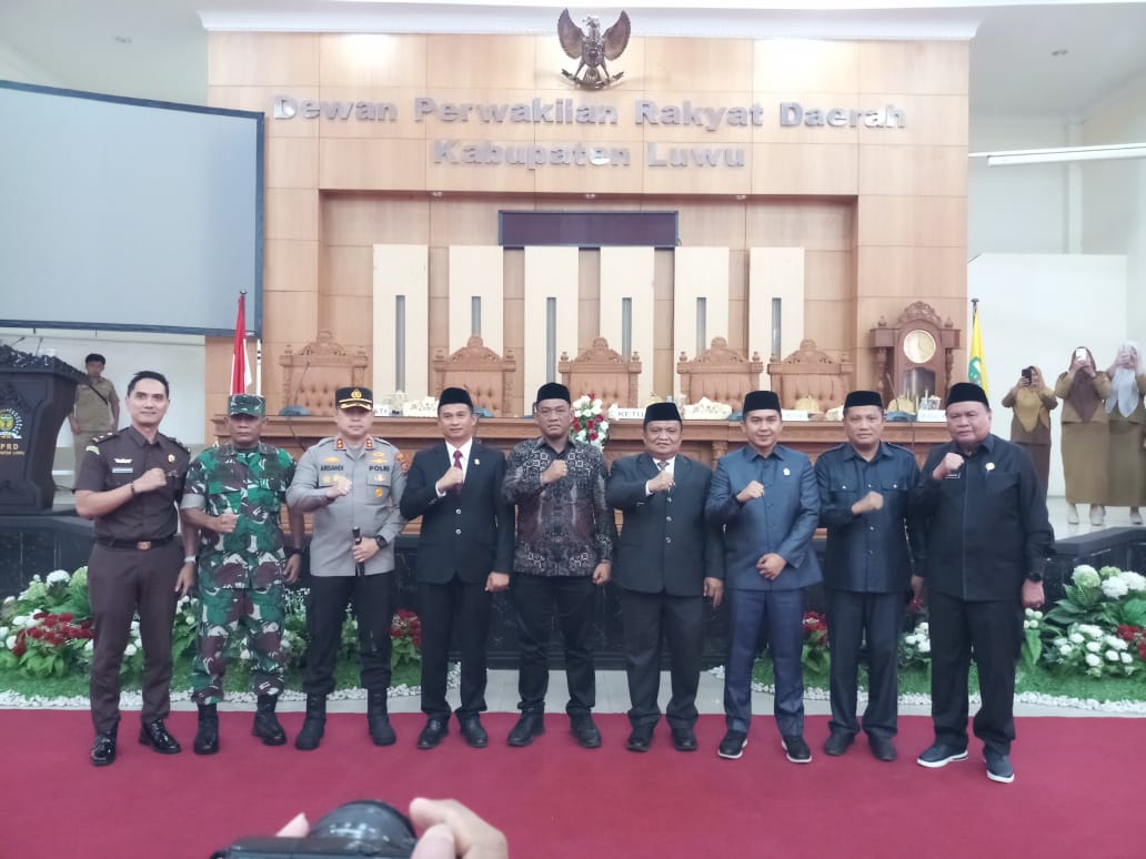 Dalam rapat yang berlangsung di gedung DPRD Luwu tersebut, turut hadir Penjabat (Pj) Bupati Luwu, Drs. H. Muh. Saleh, M.Si., jajaran Forkopimda, Sekretaris Daerah Luwu, serta sejumlah pejabat lingkup Pemerintah Kabupaten Luwu.