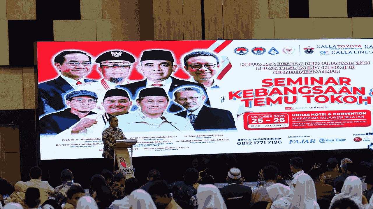 Makassar, Sulsel – Universitas Hasanuddin (Unhas) menjadi tuan rumah dalam kegiatan bertajuk “Seminar Kebangsaan dan Temu Tokoh” yang diselenggarakan oleh Keluarga Besar Pelajar Islam Indonesia (KB PII) se‐Indonesia Timur. Kegiatan berlangsung di Ballroom Unhas Hotel and Convention, Kampus Unhas Tamalanrea, Sabtu, 26 Oktober 2025.